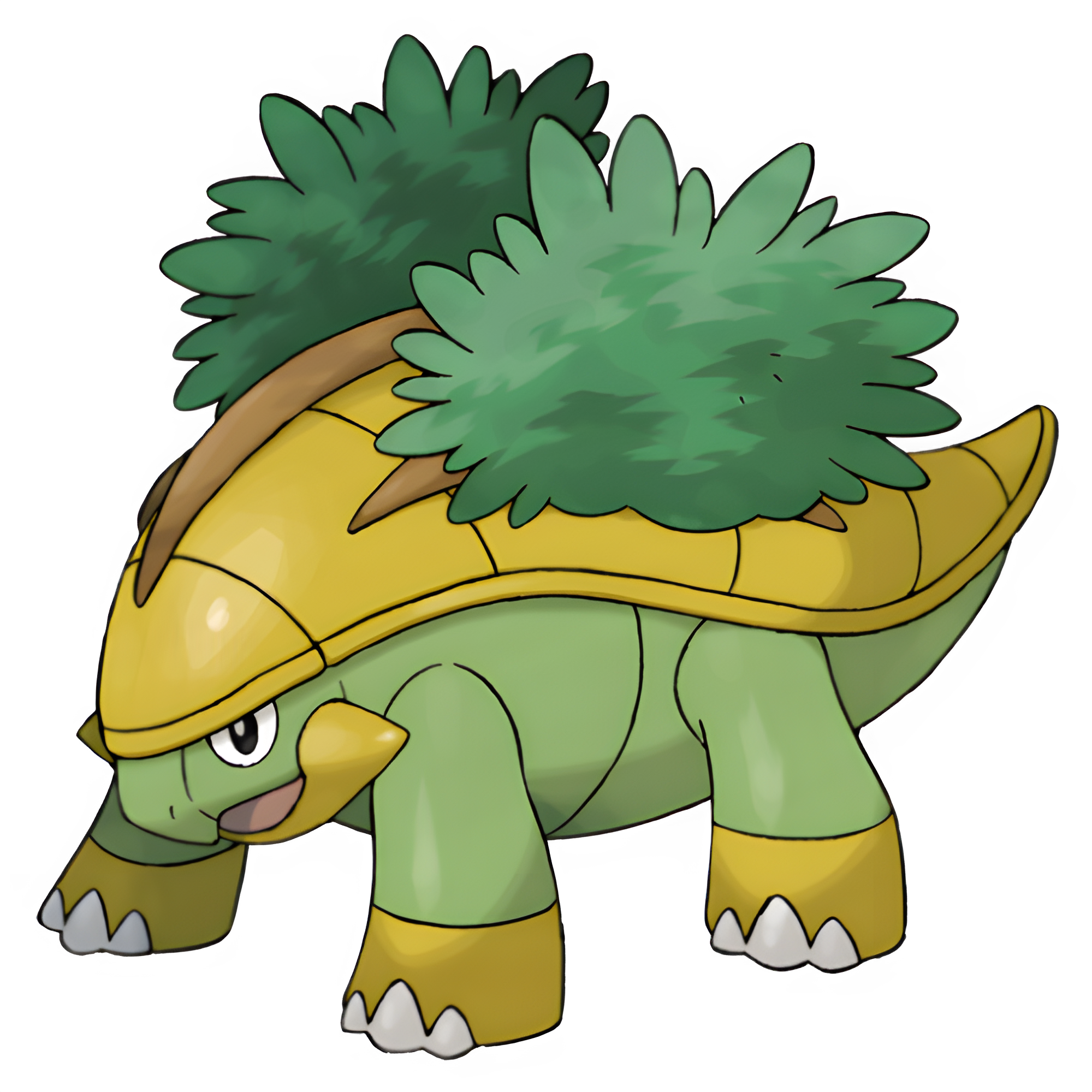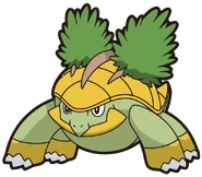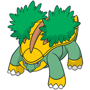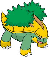 These Pokémon live in forests and pristine places with clean spring water, and are often found near sources of food. Like Turtwig, they gain energy by photosynthesis but they also eat berries. During the day, they leave their forests to sunbathe their shells. They sometimes carry other Pokémon on their backs.