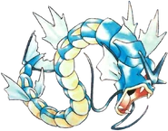 Gyarados appears to based off a sea dragon or a sea serpent from China. Gyarados, being evolved from Magikarp, which is a relatively useless and weak Pokémon, is a reference to a common belief in Asian countries that a carp will transform into a dragon (despite Gyarados not being Dragon type) after it jumps over a tall waterfall. This Pokémon may also be based on Utuboros from the Mega Man X games.