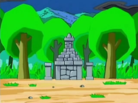 The Hallowed Tower first appeared in the episode The Keystone Pops!. Ash and Dawn unintentionally discharged Spiritomb from it.