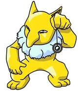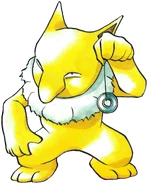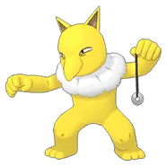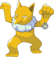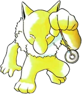 Hypno is a human-like Pokémon with yellow skin. On the top of its head are large, catlike ears. Its eyes are usually squinted, and lower down. It also has a large nose. On its neck, Hypno has a large white mane, which stretches completely around. Hypno also has human-like arms and hands, which both have five digits. It is also always carrying a small pendulum, which it uses in most of its Psychic based attacks.