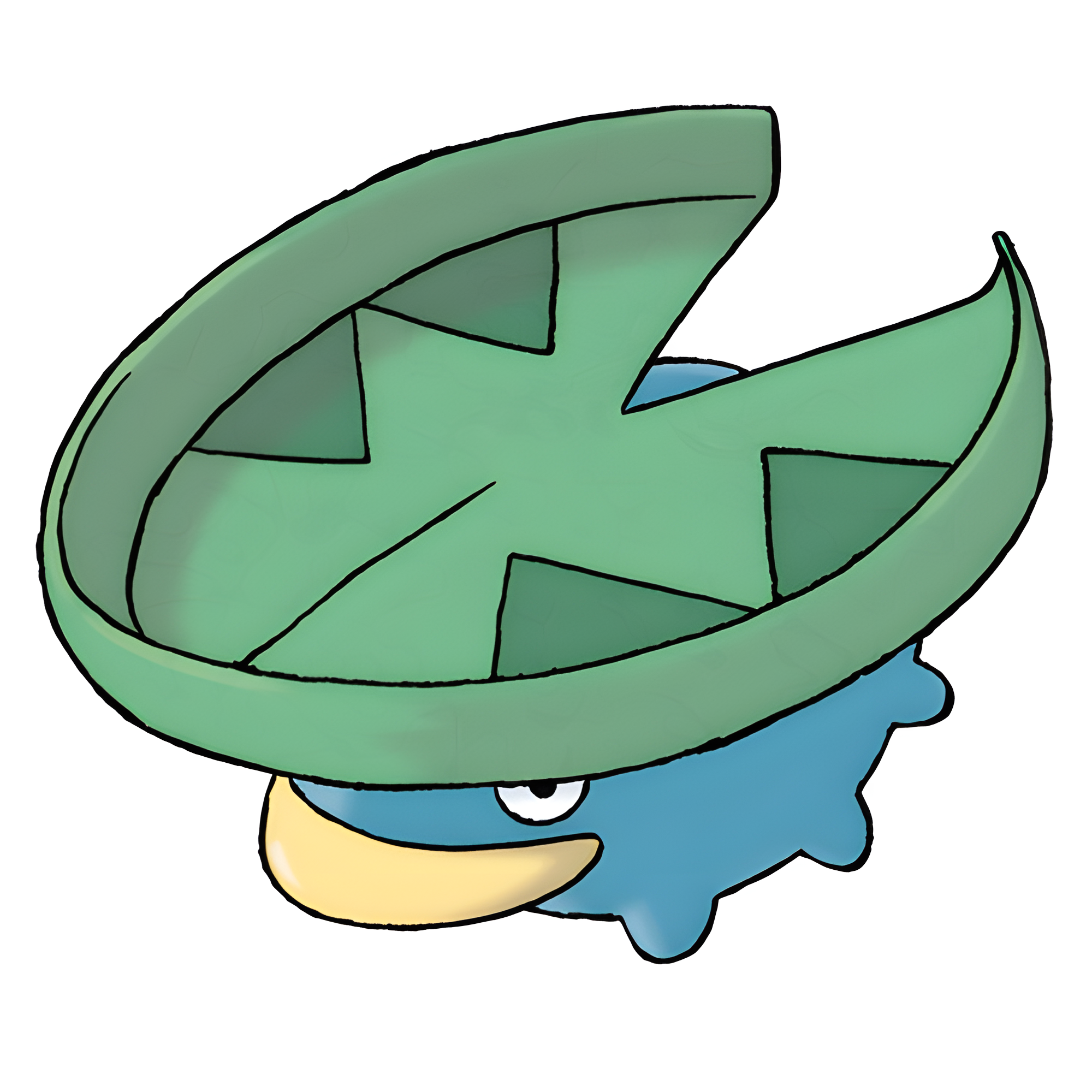 This Pokémon lives in ponds with clean water. It is known to ferry small Pokémon across ponds by carrying them on the broad leaf on its head.
