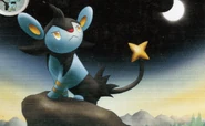 By joining its tail with that of another Luxio, this Pokémon can receive some of the other Luxio's electricity and power up its own electric blasts.