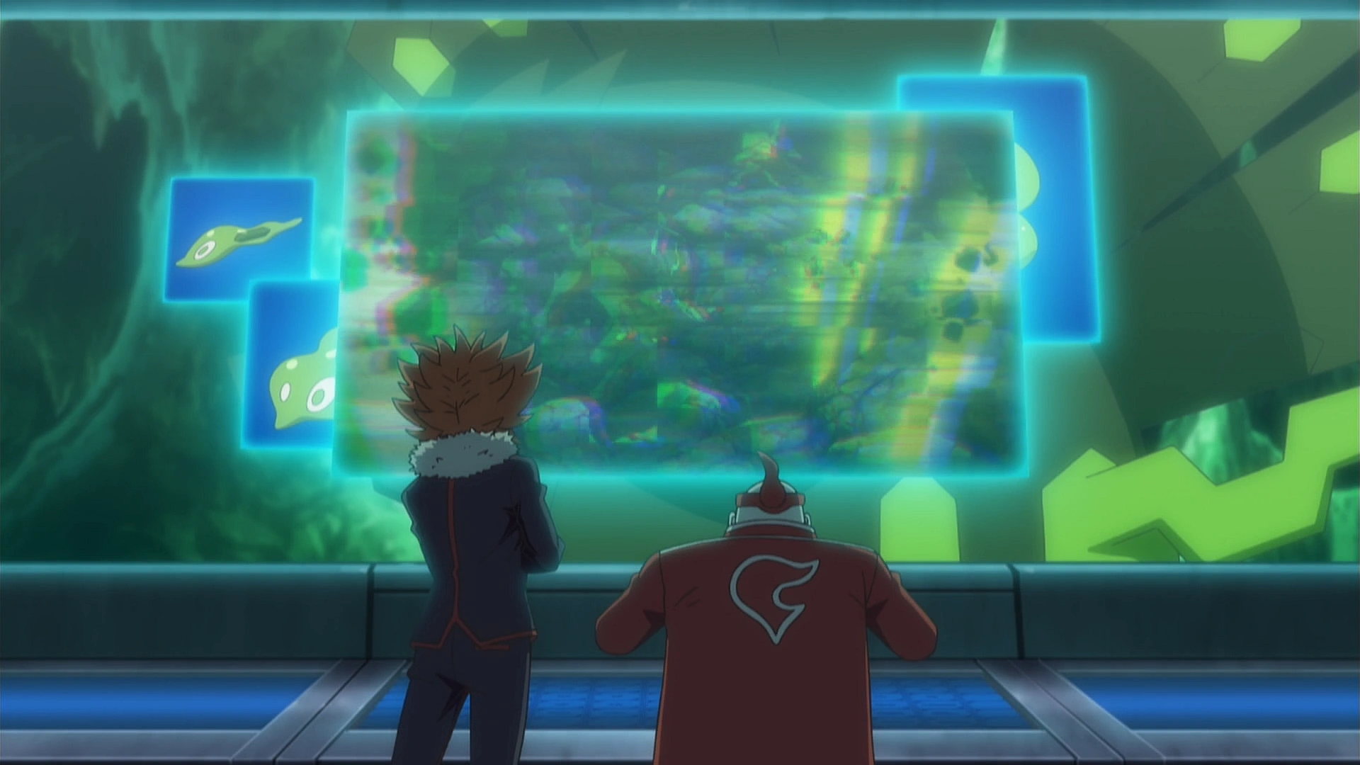 Lysandre was first seen observing some data in his lab, pleased Alain is going to Hoenn to gather more data about Mega Stones.[3]