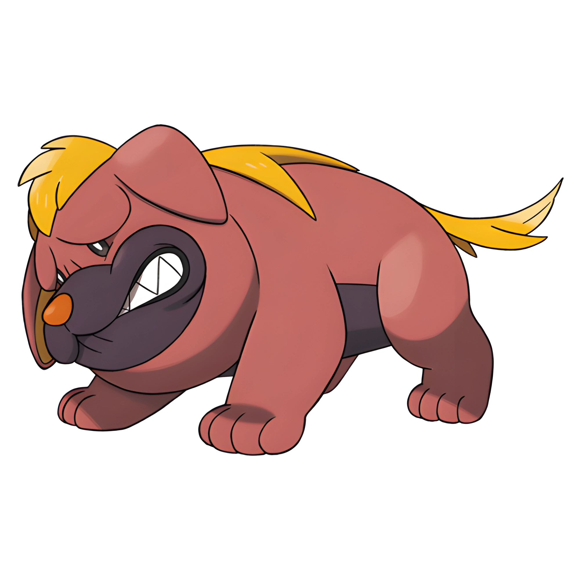 Maschiff is a small doglike Pokemon. It has a streak of yellow hear running from the top of it's head, to the back of it, forming a tail.