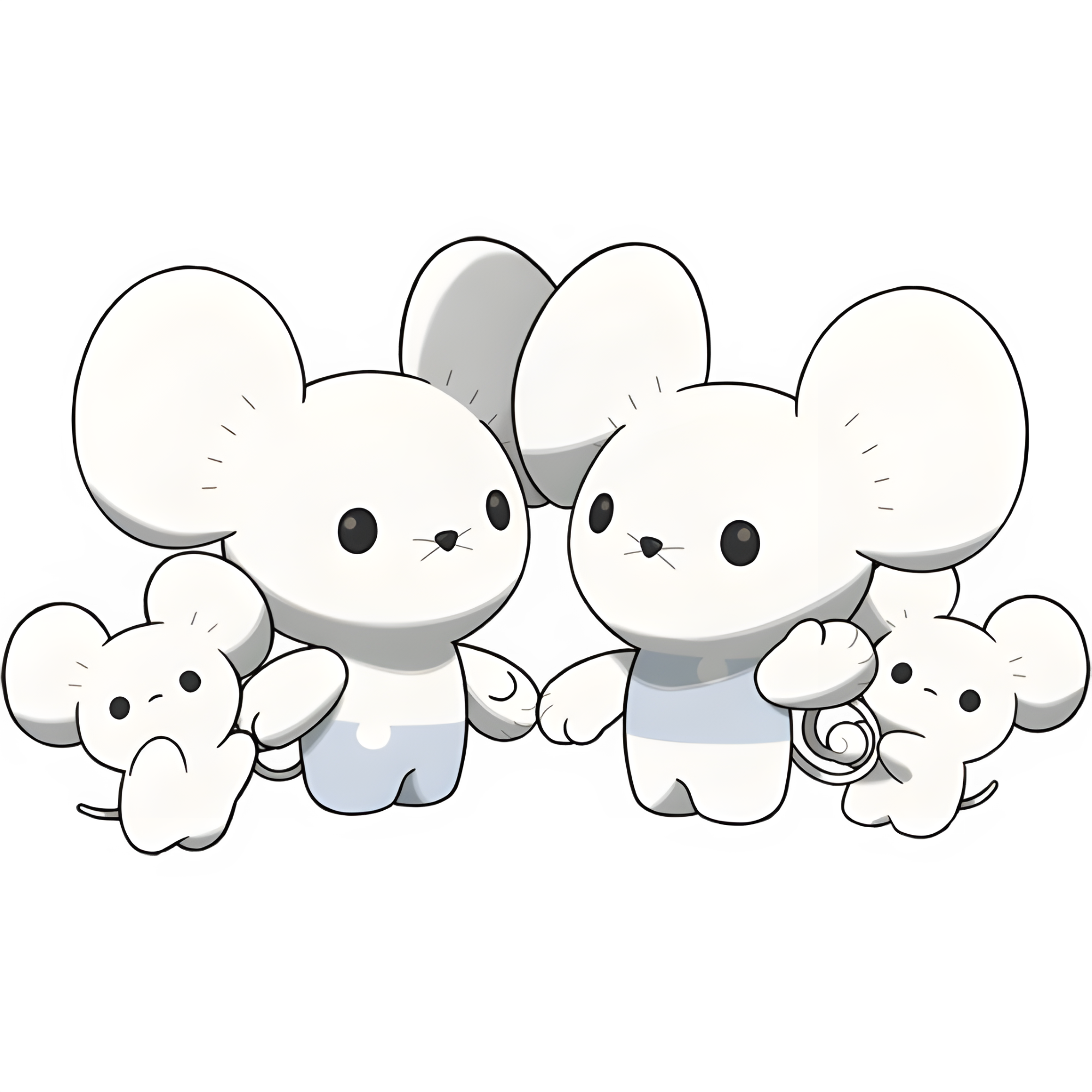 Maushold is based on a family of mice. The fact that one or two smaller appear upon evolution represents the mice ability to breed explosively. Specifically, their species' inspiration is derived from lab rats (regarding their white fur), and behavior wise Prairie voles. Their cute appearances might be inspired by plush toys and the Sylvanian Families toyline's characters.