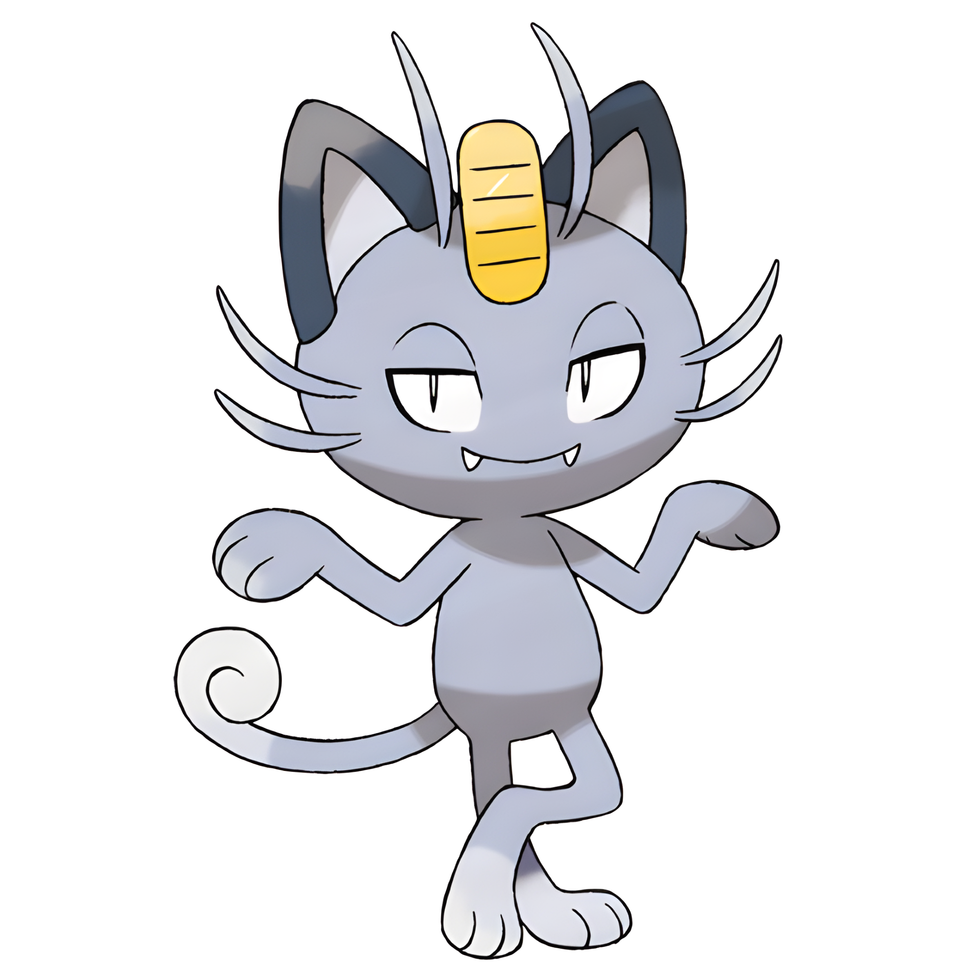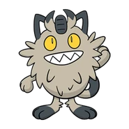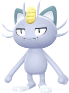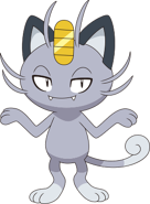 Alolan Meowth is extremely cunning, capricious and proud, and will become very aggressive when someone dirties its coin or hurts its self-esteem. It is also extremely picky about food due to its kind having dwelt with royalties for centuries. Nonetheless, it is popular among Trainers who prefer giving more attention to others than themselves. It usually repeatedly targets its foes' blind spots during battles.