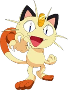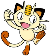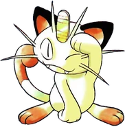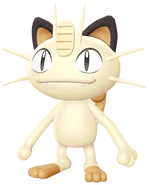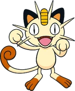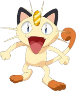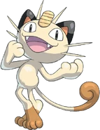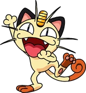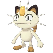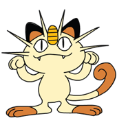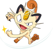 Meowth is largely nocturnal and often prowls the streets looking for loose change, as it is attracted to bright shiny objects for some unexplained reason. It always cleans its face to prevent its forehead coin from getting dirtied. It is common to witness Meowth ferociously disputing with Murkrow, which is also known for being equally obsessed with glowing things. Although it can be easily drawn by coins and may befriend people that offers them, its fickleness cannot guarantee such friendships will last; when it is feeling good, it will be willing to share a look of its hoarded treasures to its Trainer.