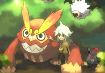 N as a child with Darmanitan, Woobat and Zorua.