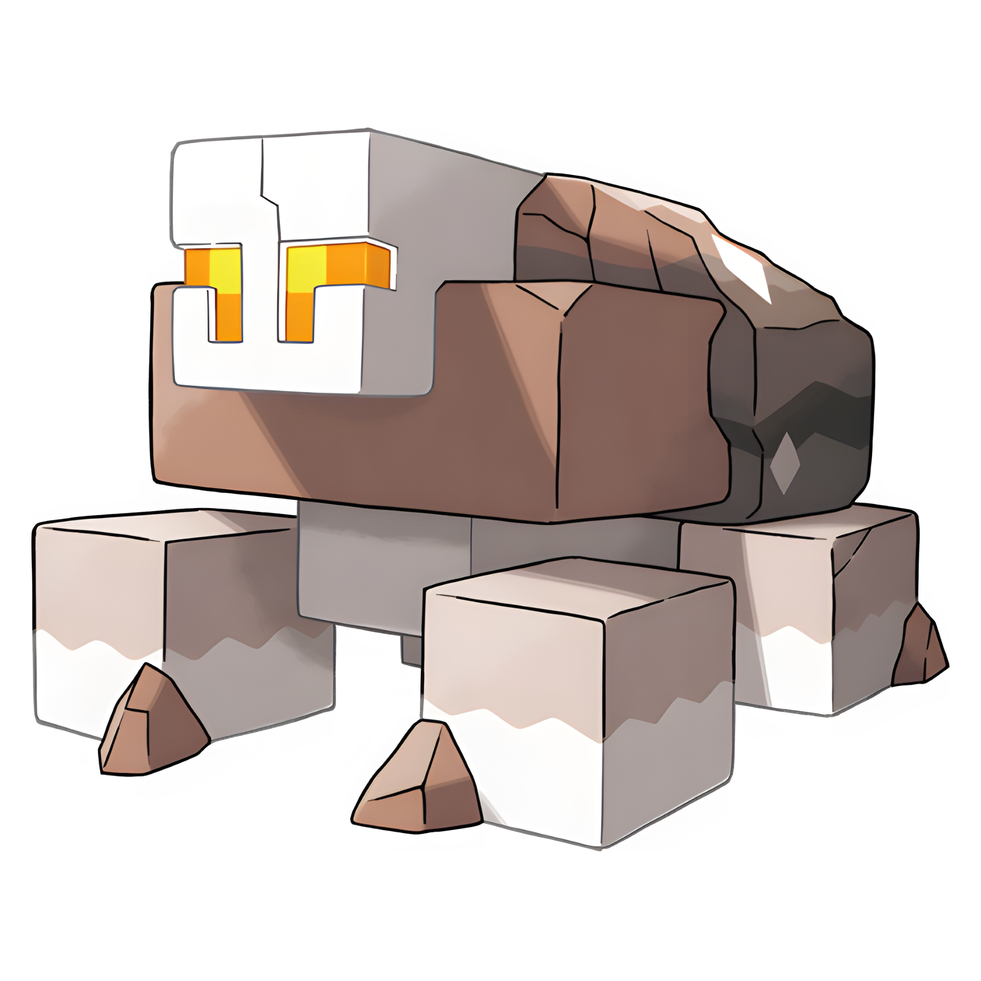 Naclstack is a symetrical Pokémon made up of cubic stones stacked on top of each other. It possesses corner like orange eyes that have yellow on the tips, and has square legs that possess tiny stones at the bottom that serve as feet. The tiny stones have a zigzag pattern on them. The back of its body contains a huge brown stone with white diamonds on it. It appears to be made up completely of rock salt.