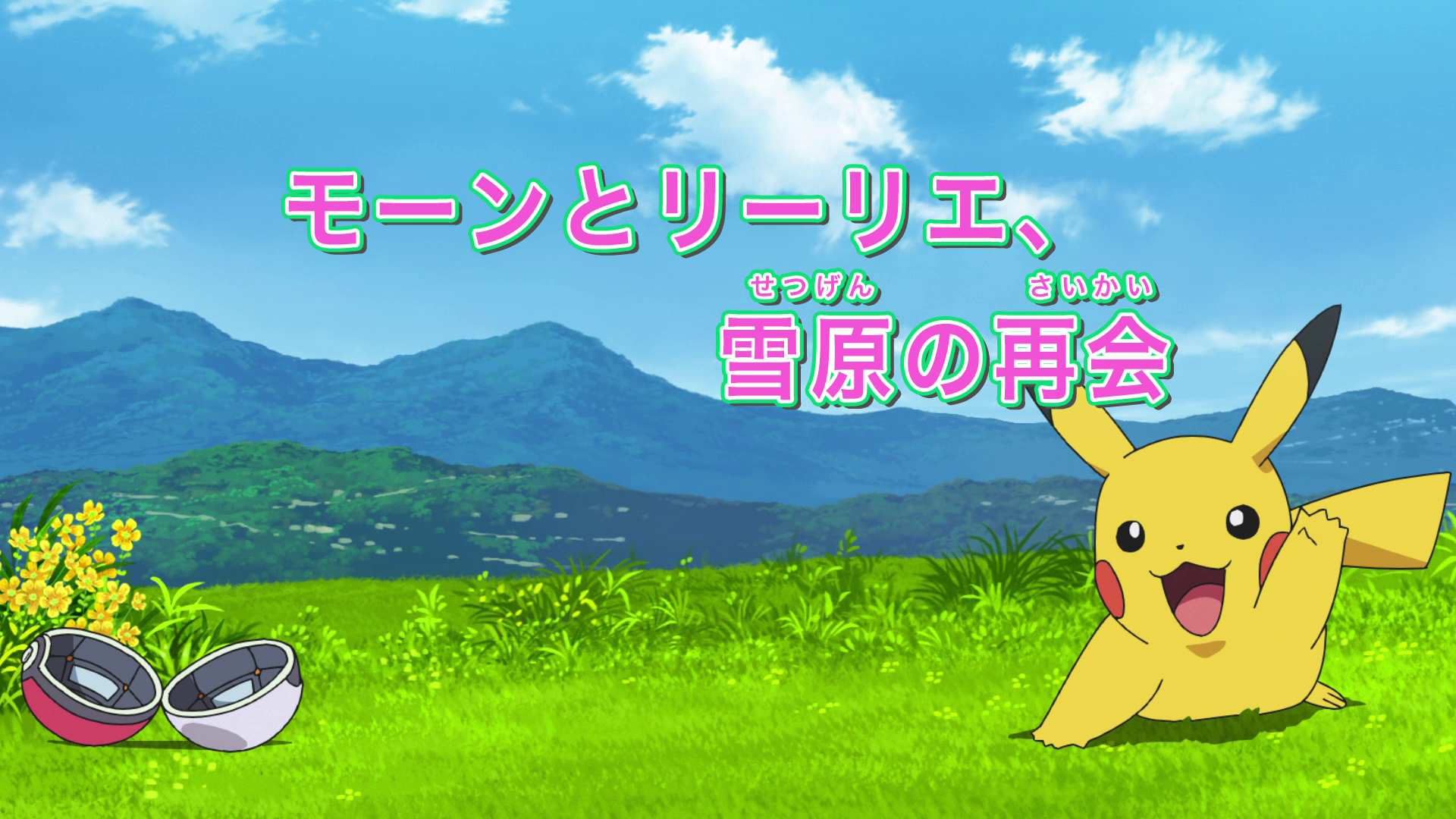 - Ash, Goh, and Chloe read the title card for this episode.
