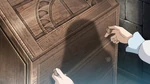 Meanwhile, Ash, Goh, Chloe and their Pokémon walk through the snow, looking for the mysterious Pokémon, which as of now is revealed to be Nihilego. After Pikachu picks up a familiar scent, Ash and his friends follow the Mouse Pokémon to the cabin, where Lillie finds herself in the piano room as she plays the same notes from before on the piano while Nihilego watches her from a distance. Lillie opens the window for some light and discovers a drawer in the room. Gladion goes around and sees that there are no mirrors in the cabin, realizing that someone had removed them. Back at the piano room, Lillie opens the drawer and discovers Mohn's old clothing and a mirror.
