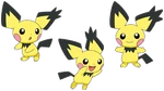 Pichu charges itself with electricity more easily on days with thunderclouds or when the air is very dry. You can hear the crackling of static electricity coming off this Pokémon.