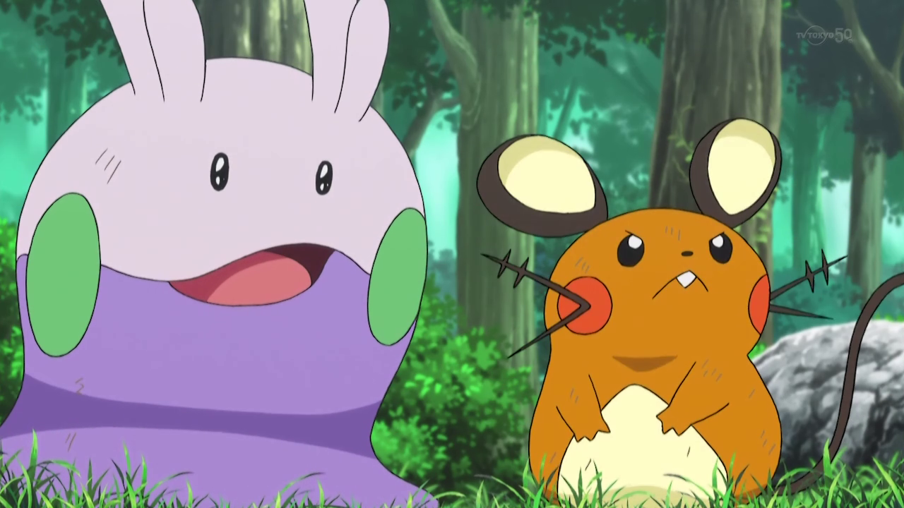 When three Beedrill attack Bonnie and Chespin, Blake’s older brother Heath (the female Meowstic’s Trainer) rescues them, and everyone goes off to the brothers’ sprawling mansion to get some first aid for Bonnie. Then, Blake and Heath’s father challenges them to a treasure hunt to decide who will inherit the mansion! Our heroes split up to help, but the treasure eludes everyone...until the brothers remember a tree with beautiful flowers that they discovered together when they were younger. Everyone runs to the spot, but they’re attacked by an Exploud! It turns out Exploud is their father’s Pokémon, and he sent it there to get the brothers to battle side by side, as they did when they were young. Blake and Heath make amends, which inspires Clemont and Bonnie to do the same. After saying their goodbyes, our heroes are off once again to Coumarine City! | ||||