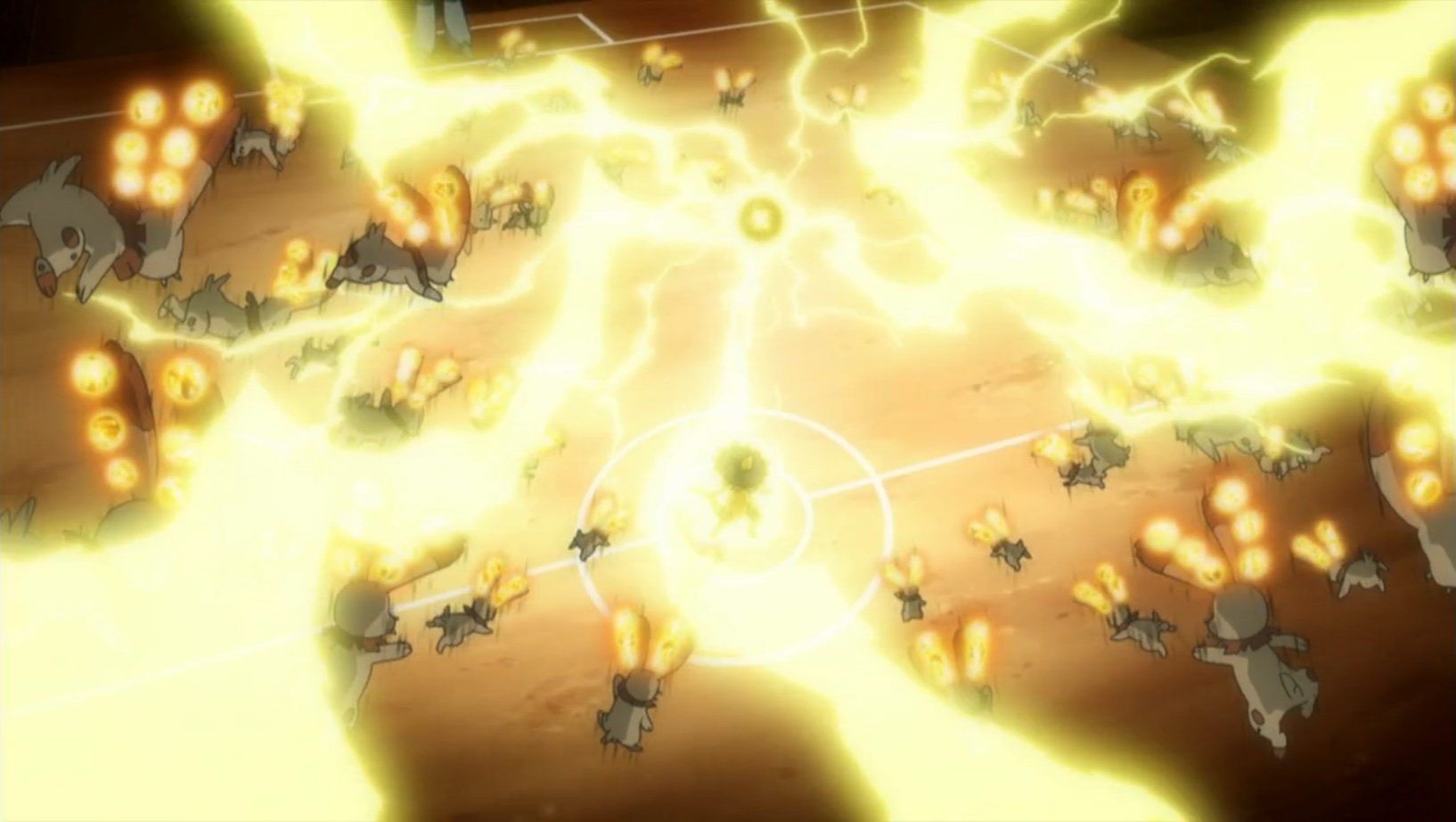 With this change of tactics, Hawlucha wins. Ash then sends in Fletchinder, who quickly takes down Korrina’s Machoke. The Gym Leader has just one Pokémon left, and of course it’s her partner Lucario, who Mega Evolves and knocks out Fletchinder and then Hawlucha in short order. But our hero’s unique battling style shines, and in the final matchup, Pikachu defeats Mega Lucario! Ash wins the Rumble Badge, and the gang is off to Coumarine City for his next Gym battle! | ||||