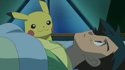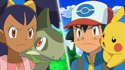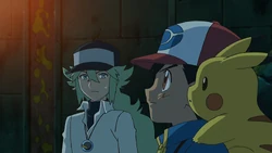 Ash mentions that they’re on their way to investigate the Legendary Pokémon Reshiram, and when N seems interested, Ash tells him about the time he saw Zekrom. N launches into a passionate description of his goals—to learn the mysteries of why Pokémon exist in this world, to meet Reshiram and Zekrom, and to make Pokémon’s lives better. This sounds good to Ash...but it quickly becomes clear that he and N don’t see entirely eye to eye when N voices his disapproval of Pokémon battles, saying he doesn’t like the idea of forcing friends to fight each other. Meanwhile, Team Rocket has yet another sinister plot to steal Pikachu for the Boss. They first lure Axew away from our heroes while Ash and Iris are having a practice battle, and Pikachu is not far behind. Soon, both Pokémon are in Team Rocket’s clutches, but with the assistance of N, they are soon freed—though not before an attack from James’s Amoonguss stuns poor Pikachu. Ash isn’t sure what to do, but N has a plan: he brings everyone to the bow of the ship and calls to his friends, and then two wild Alomomola leap out of the water and use Refresh to heal Pikachu! The ship is docking at Castelia City, where N has to go—but he assures our heroes that they will meet him again. As he leaves, he considers what seeing Zekrom might mean for Ash...a life-changing experience indeed! | ||||