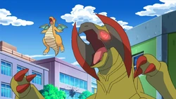 Ash tells everyone the story of how he first met Charmander. Just like Tepig, Charmander was abandoned by its original Trainer. Ash rescued it, and soon it became part of his Pokémon family! However, when it evolved into Charmeleon, it stopped taking commands from Ash, doing whatever it wanted. But Ash never gave up on his beloved Pokémon, and soon it evolved into an awesome and fearsome Charizard! The two of them traveled together for some time, until their journey took them to the Charicific Valley, where many Charizard engage in intensive training against each other, and Ash took the opportunity for his Charizard to become stronger. Although the two have reunited on several occasions, Ash now wants to see his old friend again, and everyone else can’t wait to meet it! So a Pokémon exchange is made with Professor Oak, and Charizard comes for a visit! When it meets Iris’s Dragonite, sparks fly immediately, and the two of them start trying to pick a fight—and rather than trying to stop them, Ash decides to turn it into a proper battle! It’s clear that Charizard has been training hard in the Charicific Valley, and both Pokémon show just how strong they are! N calls the battle to an end, and observes that the two Pokémon have found real respect for each other. Ash asks if Charizard would like to rejoin him on his journey, and the answer is an enthusiastic yes! So, it’s off once again to the White Ruins, but now with Charizard along, reunited with our heroes once again! | ||||