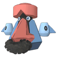 Probopass is based upon rock having big nose and mustache. Its nose is red and it lacks hands. Instead of them it has bird's peck there. Its body color is grayish blue.