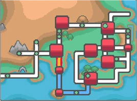 Route 1 is a route located in the Kanto region. It is surrounded by trees on all sides. It leads to Viridian City. There are several ledges blocking the path at different parts of the route, and a trainer has to travel the route in an 'S' pattern. Various patches of grass can be found; with three of them at the entrance of the route. There are several flowers spread across the route in different areas.