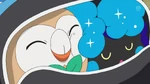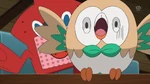 Sophocles thinks it is a new Pokémon species, as Kiawe remarks Ash found a new Pokémon, which excites him. The Pokémon giggles in the sleep, making Lana and Mallow amused by its cuteness, looking like a baby. Lillie mutters "Nebby", thinking it is a good nickname for a sparkling Pokémon, shaped like a cloud. Others agree it is a fitting nickname, as Lillie calls Nebby. Nebby wakes up, and immediately cries out, emitting Supersonic that overwhelms others by its sound. The class tries to calm it down, by gently shaking it, singing a song. Mallow calms it down by stroking it, and Steenee emits the Sweet Scent, which attracts Rowlet. Steenee bashes Rowlet away, who flies back, which makes Nebby laugh. Ash notes Nebby cries and laughs, like a baby would. With Nebby calmed down, Kukui proposes giving it food, to see what it likes to eat. The class gives Nebby some sandwiches, salad, Pokémon food and other things, but Nebby is not interested. Ash takes one of Sophocles' candy - sugar stars named konpeito - which Nebby delightfully eats.