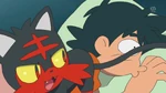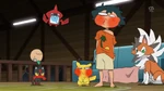 In the morning, Rotom tries to wake Ash up, informing him to get ready for school. Since Ash, Pikachu and Rowlet are still asleep, Rotom tells Litten to wake Ash, who does that by slapping his face multiple times with its tail. Ash wails in pain, as he is finally awakened. He angrily complains them to wake him up in a friendly way but Rotom scolds him to sleep early, rather than a friendly wake up. While going downstairs, Ash also remembers the dream he had where he made a promise to both Solgaleo and Lunala, much to his confusion. While Ash and his Pokémon eat breakfast, Rotom turns the TV on to watch the news. The news report Professor Burnet is the lady of the year in Alola, much to Kukui's surprise; he tells Ash she is a fellow researcher. The news explain the award is given once per year, but this time it is given to Burnet, due to her research results and her unique personality. Ash is amused by her, and Kukui tells she researches Ultra Wormholes, which he'll explain to Ash later on.