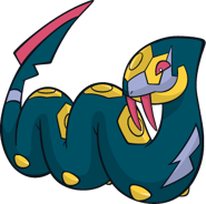 In battle, it uses its bladed tail to counter any Zangoose. It secretes a deadly venom in its tail.