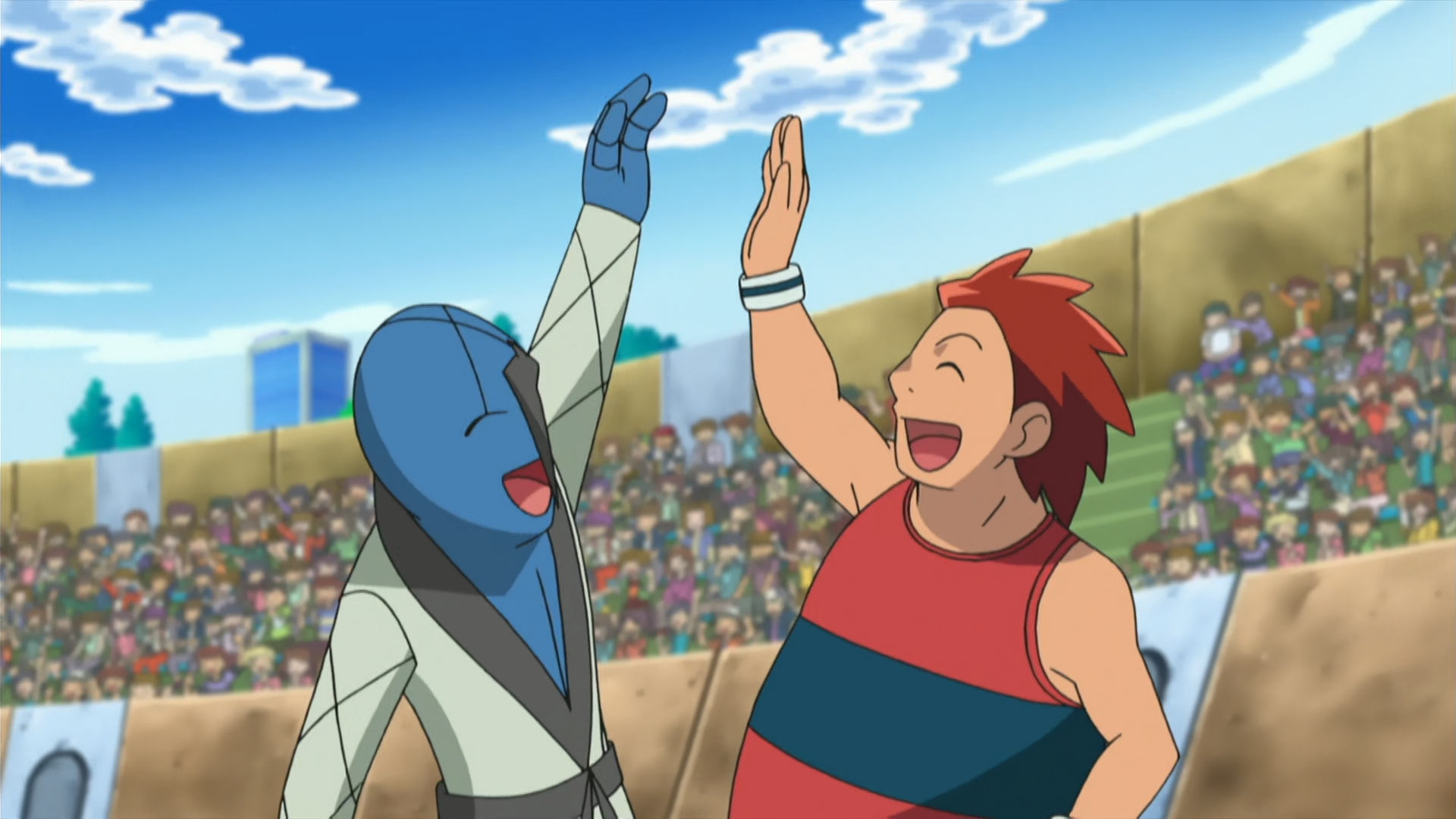 Stephan congratulates Ash on his victory.