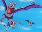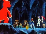 Meanwhile, Ash and Team Rocket try to find a way out. They meet some ancient Pokémon who they thought to be extinct. Jessie and James say that the blast must have woken up Pokémon that have been sleeping for 1,000 years. The ancient Pokémon are angry at Ash and Team Rocket for waking them up, so they attack. Ash sends out Charmeleon, but he refuses to battle such weak opponents. Just then, the fossil Pokémon suddenly run off. They are happy the Pokémon left, but then they realize why they left: an Aerodactyl appears as it scratched Charmeleon down and grabs Ash, and swoops up into the air.