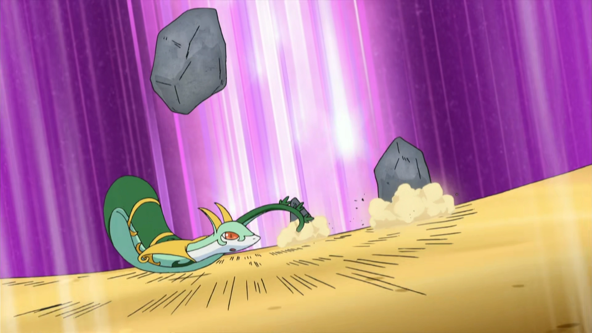 Serperior's elusiveness allows it to dodge Crustle's Rock Slide.