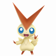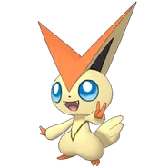 Victini is a very shy and elusive Pokémon. It will often become invisible and only reveals itself to those it trusts. However, being a Fire-type, Victini's temper will flare up if it feels the need to defend its friends.