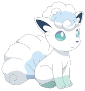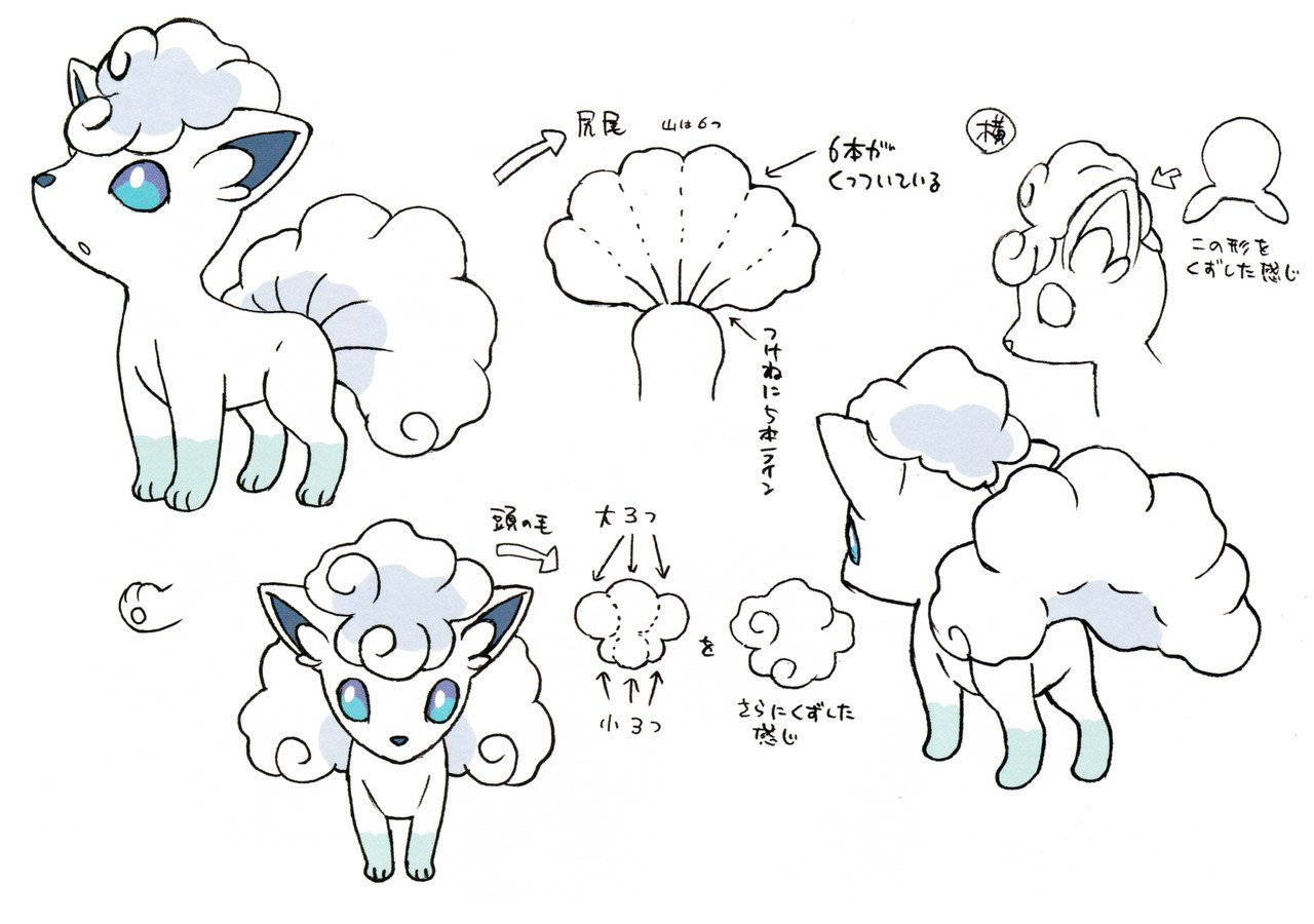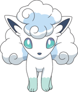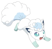 Alolan Vulpix is based on an Arctic fox, a species of fox that lives in icy tundras and grows a thick white coat during the winter. The tuft of fur on its head and its tail greatly resemble snow clouds and wisps.