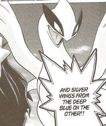 Karen knocked her to the ground, as Will was glad they managed to break Green by using her bird phobia. He thought Green should've been captured at an earlier age, so she wouldn't remember her past, just like Silver didn't. Green was thankful she didn't involve Silver in this, but Will informed that Silver was no match for them. As if on cue, Silver's unconscious body collapsed to the ground, as Will watched Green run towards him. When Silver fell into unconsciousness once more, Will comments that he was bored, prompting Green to get angry at him. Will wondered whether she was still suffering from her phobia of birds, summoning Ho-Oh on the scene. However, Green stood her ground, much to Will and Karen's surprise, as Green overcame her fears. Enraged, Will and Karen order Ho-Oh to attack her, but she counters the attack by summoning Zapdos, Moltres and Articuno. Will instantly took to Lugia's back, as Karen did the same with Ho-Oh, as both factions engaged in battle with one another. However, as Will attempted to attack Green on Moltres' back, Silver appeared behind him. Will is surprised by Silver's sudden appearance, as the giant birds fly above Ilex Forest's shrine.[3]