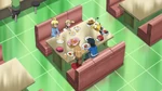 Standing up to Noivern’s Gust is hard work, but soon Ash feels like they’re ready. He also has an idea about how to deal with the ice battlefield if Viola uses that trick again, but he’s not telling anybody what it is. And since they also had trouble with Surskit’s Sticky Web, Clemont shows off one of his inventions: a machine that reproduces Sticky Web exactly! The machine shoots a couple of webs so Pikachu and Fletchling can practice dodging, but when Clemont tries to turn up the intensity, it blows up. Undeterred, Ash asks Froakie to throw its gooey Frubbles to simulate Sticky Web attacks, and Ash and his team seem to be as ready for a rematch as they can be...