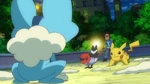 As Ash and his Pokémon finish up, Clemont takes Bonnie to bed as it's getting late. Ash talks to his Pokémon for a bit, telling them they've got to give their all against Viola tomorrow. Serena walks over and marvels about how Trainers are, noting she'll have to put on all her effort to get that Gym Badge. Sharing his experience, Ash tells her it doesn't happen immediately and that he'll continue to catch Pokémon after the Gym Battle. He asks her what her journey is and she admits that she and Fennekin haven't decided yet. Ash tells her she'll come to a decision eventually and she thanks him. The next day at the Gym, Alexa notes to Serena that Ash seems all fired up and reveals that she didn't expect her to be the one to fire Ash up. Viola remarks that she heard her sister helped Ash with his training. As Ash responds they'll definitely get that badge this time, Viola retorts that victory will surely be a shutter chance before sending out her Surskit to battle. Ash sends Pikachu to go battle it.