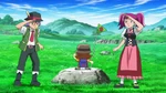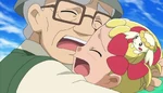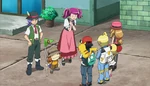 Before the heroes set off, Bonnie tries to comb her hair, but fails. Serena thinks Bonnie could have a different hairstyle and places a flower accessory in her hair. Bonnie thinks she looks cuter with that. The wind blows and a Pokémon lands onto Bonnie's hair accessory. The heroes see it is a Flabébé, but notice it does not have a flower and looks unhappy. Bonnie feeds it with Serena's nectar, which is used for Poké Puffs. Bonnie thinks they should keep this Flabébé. Clemont taps the Poké Ball onto Flabébé, but nothing happens. Ash explains Flabébé has a Trainer already, making Bonnie riled up. As the heroes pass through a nearby town, an old man runs to Bonnie and hugs her, seeing Flabébé is rescued. The man, sees he was quite hasty, apologizes to everyone and introduces himself as Gray.