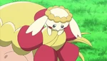 Flabébé, seeing this fighting, pulls out the Fairy Flower and spreads powder, uses pollen to calm Team Rocket down and make them feel peaceful. Meowth covers his mouth not to inhale, but Jessie and James pull his arms away and he is affected. They release Pikachu, who comes back to Ash. The heroes go to meet up with Florence and Gray, leaving Team Rocket in the field, still feeling peaceful. Later, Gray explains Florence, at the hospital, some children went to retrieve a Fairy Flower for Flabébé, who will come to her. The heroes come to the hospital, where Florence sees her Flabébé with the flower and feels better. Florence thanks the heroes, who give credit to Bonnie, for she saved Flabébé. Flabébé comes to Bonnie, who thinks they had good time, even if it was short, telling Flabébé to live with Gray and Florence. Flabébé cherishes these moments and smiles with Bonnie. The heroes leave the hospital and Bonnie feels sad Flabébé is not with her. Dedenne climbs to Bonnie's head, making her feel better. Knowing she has Dedenne with her, Bonnie runs to Ash, Clemont and Serena, as they go towards Shalour City.