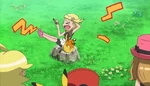 While they’re distracted, Team Rocket nabs Pikachu! As a battle to reclaim it begins, Flabébé bonds with its new flower, and once its energy is restored, it floats over the villains and sprinkles them with its relaxing pollen. The Team Rocket members happily release Pikachu and wander off in a joyful daze!
