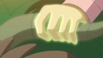 While everyone goes to practice, Serena stops and tells them she will join them later. She trains her Fennekin and Pancham for the Showcase, though Pancham falls down on Fennekin. Serena remembers Aria's performance and thinks she may not be good enough, not even to tell her mom. Still, she is determined to train more, being determined as Ash is, while her mother observes that. Team Rocket came in the storage room, filled with cheese, yoghurt and milk. They load the truck and escape, though some workers spot the theft. Serena calls her Pokémon back. Ash, Clemont and Bonnie ride Skiddo to track them down. Serena comes to a Rhyhorn and asks it to allow her to ride it, for Rhyhorn are faster than Skiddo. Remembering the technique to ride Rhyhorn, Serena utilizes it and chases Team Rocket, with Grace following her.