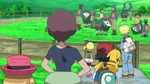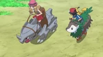 When our heroes come across a Skiddo ranch known for its delicious cheese and ice cream, they discover that Serena’s mom, Grace, is there as a Rhyhorn racing coach. Everyone wants to ride a Skiddo, except Clemont.