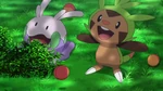 Goomy comes to a bush, eating its leaves. Chespin comes out of Clemont's Poké Ball, using Pin Missile on a tree to knock off some fruit to eat, but this ends up disturbing an Ariados who lives in the tree. Goomy hides behind Pikachu, who uses Electro Ball to counter Ariados' String Shot. Clemont apologizes to Ariados for the disturbance and Ariados, while annoyed, lets them off the hook and climbs back up.