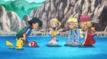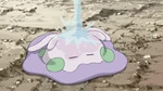 Bonnie and Serena speed up, wanting to get to Coumarine City as soon as possible. Clemont senses she wants to participate in her first Showcase. She very excitedly affirms, but is soon exhausted (along with Clemont) from the lengthy uphill trek. Having made it to the top and still retaining high energy, Bonnie lets them know it goes downhill from her spot. The heroes notice a Swanna flying in the air. It drops a slimy object which falls and lands on Ash's face. The object is a Goomy, which the gang discovers from a quick Pokédex check is the weakest Dragon-type Pokémon. Clemont remembers Goomy's body consists of water, thinking it may be dehydrated. Serena pours some water on it, who barely opens its eyes.