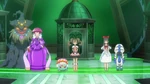 Shauna wins her group easily, beating out Jessilee (Team Rocket’s Jessie in disguise). In Serena’s group, things seem to be great...until Fennekin trips over its ribbon while walking the runway. This knocks them out of contention, and they have to sadly watch the rest of the competition from the wings. Shauna delivers an amazing Freestyle Performance with her Bulbasaur and Flabébé, winning the Showcase and her first Princess Key!