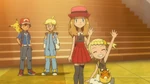 Outside, everyone congratulates Shauna, who asks them not to tell Tierno or Trevor as she wants to tell them herself so she can see their shocked faces. Serena is determined to go after more Showcases. Shauna leaves, bidding farewell to all of them. As they go to the Pokémon Center, Clemont suspects Serena blames herself for this failure and expresses concern about whether or not she will be okay. Ash expresses his belief that she in fact will, and adds that Serena is strong. Jessie, however, thinks these people have no taste. Meowth volunteers to join up with Jessie. With that, Team Rocket aims to conquer Kalos and make Jessie the Queen. At the Center, Ash is reminded he needs to pursue the fifth badge. Clemont remembers his promise and they decide to go to Lumiose City and have the Gym Battle. During the night, Palermo is displeased there was nobody that clicked in the performance.