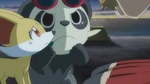 While some performances go underway, Shauna notices Serena is getting tense, so she tells her that she'll do fine. Soon, Serena is called, along with Blanche and Clarice. Bonnie cheers on Serena to do her best, while Clemont is feeling nervous watching this. Serena sees Fennekin and tells herself and Fennekin to start this dream. The performance starts, as Serena immediately chooses a ribbon and a hat for Fennekin, since they were prepared for this. She is determined to give her best. Time is out and the first ones are Blanche, with her Meowstic, who is decorated with jewelry; Next is Clarice, whose Fletchling leaves sparkles. Last is Serena, who shows Fennekin. Serena admits to Fennekin that she's having fun. Suddenly, Fennekin trips over her own ribbon and falls down on the middle of the stage shocking the heroes. Serena rushes to Fennekin and holds it tenderly as the crowd silently watches on. She comes in third while Blanche advances to the next round.