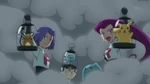 Ash explains Florges came here to heal Floette, but the water is now taken by Team Rocket. Serena asks Yanmega if it was true, which remorsefully responded with a nod saying "yes". Team Rocket goes away, but Goodra, per Ash's orders, throws him onto the aircraft. Florges leaves Floette to Pinsir while it flies on Yanmega towards the aircraft. Florges comes onto the aircraft but loses balance, so Ash pulls Florges back. Goodra uses Dragon Pulse on the ground, catapulting itself onto the aircraft. Team Rocket, seeing unwanted presence, tries to shake them off. Goodra uses Dragon Pulse, creating a gap in the aircraft and they enter the aircraft. Team Rocket is not pleased about this, so Meowth decides to take care of them. Ash notices Pikachu, Dedenne and Wooper, but the gate is shutting. Goodra uses its force to block the shutting, allowing Ash and Florges to enter the room. They approach the cage, but are stopped by Team Rocket.