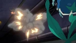 Ash, Bonnie and Goodra go into the cave and soon face Florges with two Seviper. They claim it is manipulated by Team Rocket, but Florges points at the lack of water. Ash and Bonnie are shocked to see Florges accuses them of this incident, while Ash notices Floette in Florges' arms. Suddenly, the ground shakes and soon there is no water. Team Rocket appears in front of Ash and Bonnie, with Pikachu, Dedenne and Wooper. Ash and Bonnie knew Team Rocket were the ones controlling Florges, but Team Rocket admits they are also stealing water. They explain Florges came here to heal Floette, but since there is no water, that won't happen. Florges is enraged as well and orders Seviper to attack, but Team Rocket drops a cube to release smoke, then they go away with the trapped Pokémon. Keanan comes to Serena and Clemont, who watch Team Rocket coming out in a Mantine aircraft.