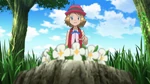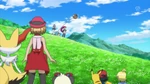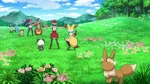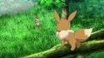 As our heroes take a break in a beautiful meadow on their way to Anistar City, Serena and Bonnie unexpectedly come across an Eevee, dancing joyfully in the sunlight! Serena is quite charmed by the Evolution Pokémon, but then Ash calls out to the girls and startles Eevee into running away.